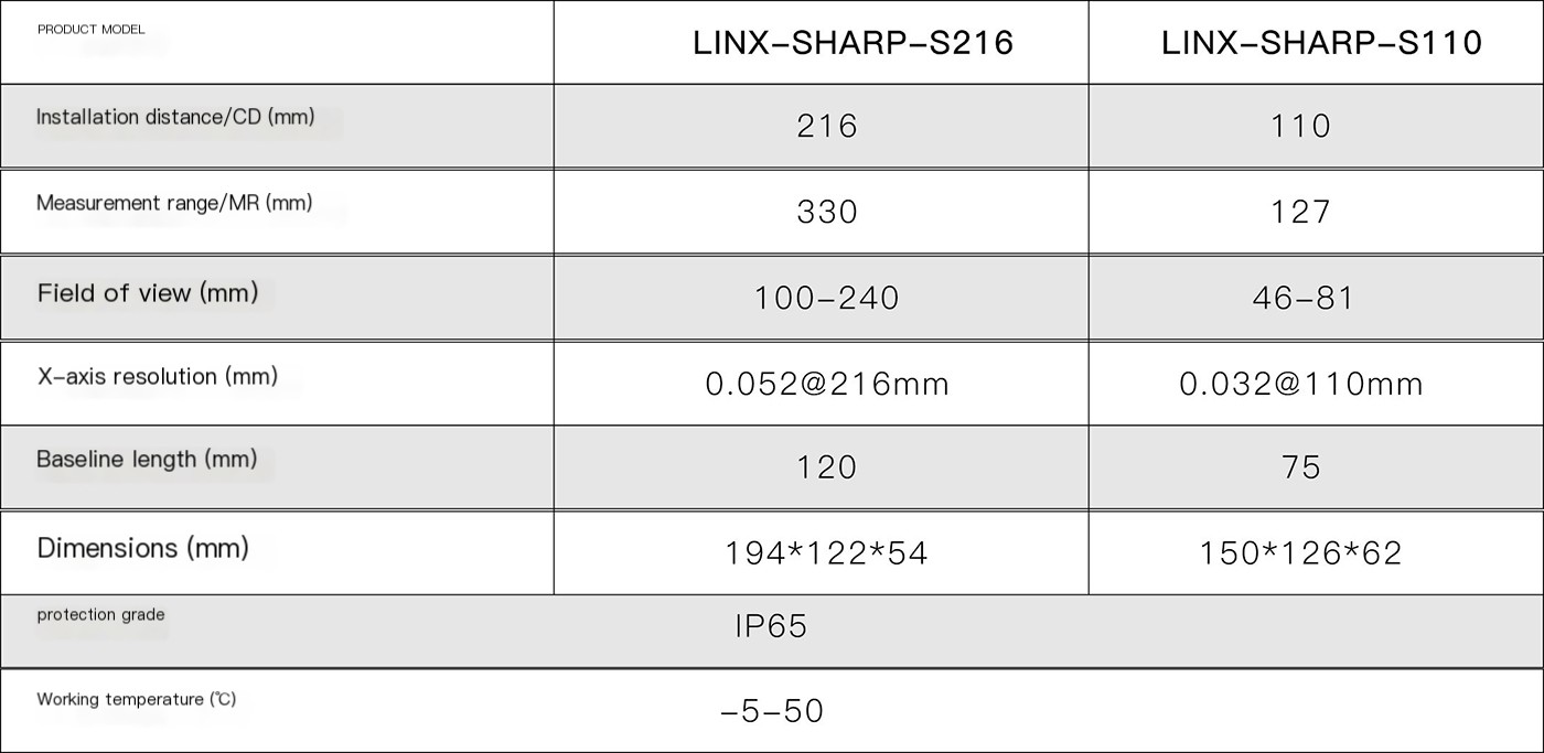 High frame rate line laser imaging, high accuracy, fast speed, and small size; The installation distance is 110-216mm, the field of view covers 46-240mm, the accuracy is 0.032-0.052mm, and the fastest acquisition speed can reach 20000 frames per second; Suitable for high precision detection scenarios such as lithium batteries and 3C products.
